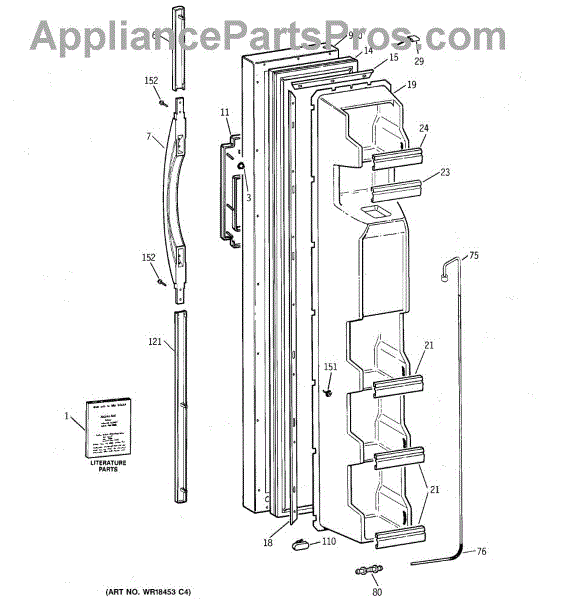This part is a lower tail handle. This is a genuine OEM part made by General Electric and has been sourced directly from the manufacturer. This part is intended to replace a broken or detached tail handle on multiple different models and brands of refrigerators. The tail handle fixes to the exterior of the refrigerator. A missing or broken tail handle can prevent the door from functioning properly. The tail handle can become detached from the appliance with regular use and may require replacement. Always ensure the appliance is disconnected from its power source before attempting any repairs. Take appropriate safety precautions and wear protective work gloves. Proper tools are needed to install this part. For more accurate installation information on how and where to install this replacement lower tail handle, refer to the original manufacturer diagrams or owner's manual.As an authentic replacement part, this lower tail handle is suitable for use on various models of refrigerators manufactured by General Electric and Hotpoint. Please note that this is a genuine part made of high-quality and durable plastic and is sold individually.