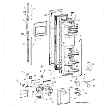 The Ice Door Assembly is an OEM part for GE refrigerators. It is integral to the ice dispenser system, controlling access to the ice chute. This component ensures the efficient delivery of ice cubes or crushed ice when activated and seals off the chute when not in use to maintain the freezer's temperature and prevent frost buildup.