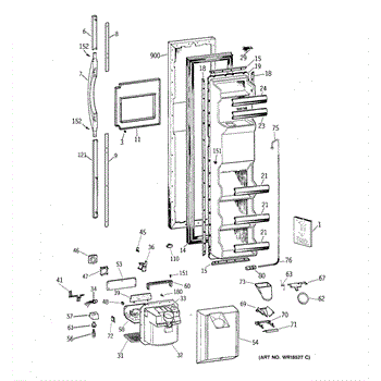 The Ice Door Assembly is an OEM part for GE refrigerators. It is integral to the ice dispenser system, controlling access to the ice chute. This component ensures the efficient delivery of ice cubes or crushed ice when activated and seals off the chute when not in use to maintain the freezer's temperature and prevent frost buildup.