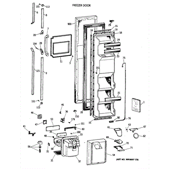 The Ice Door Assembly is an OEM part for GE refrigerators. It is integral to the ice dispenser system, controlling access to the ice chute. This component ensures the efficient delivery of ice cubes or crushed ice when activated and seals off the chute when not in use to maintain the freezer's temperature and prevent frost buildup.
