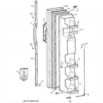 The Door Handle is an OEM part for GE refrigerators. This part provides a secure and comfortable grip for opening and closing the refrigerator door.