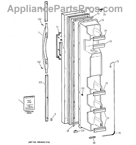 This part is a lower tail handle. This is a genuine OEM part made by General Electric and has been sourced directly from the manufacturer. This part is intended to replace a broken or detached tail handle on multiple different models and brands of refrigerators. The tail handle fixes to the exterior of the refrigerator. A missing or broken tail handle can prevent the door from functioning properly. The tail handle can become detached from the appliance with regular use and may require replacement. Always ensure the appliance is disconnected from its power source before attempting any repairs. Take appropriate safety precautions and wear protective work gloves. Proper tools are needed to install this part. For more accurate installation information on how and where to install this replacement lower tail handle, refer to the original manufacturer diagrams or owner's manual.As an authentic replacement part, this lower tail handle is suitable for use on various models of refrigerators manufactured by General Electric and Hotpoint. Please note that this is a genuine part made of high-quality and durable plastic and is sold individually.