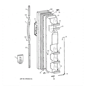 The Door Handle is an OEM part for GE refrigerators. This part provides a secure and comfortable grip for opening and closing the refrigerator door.
