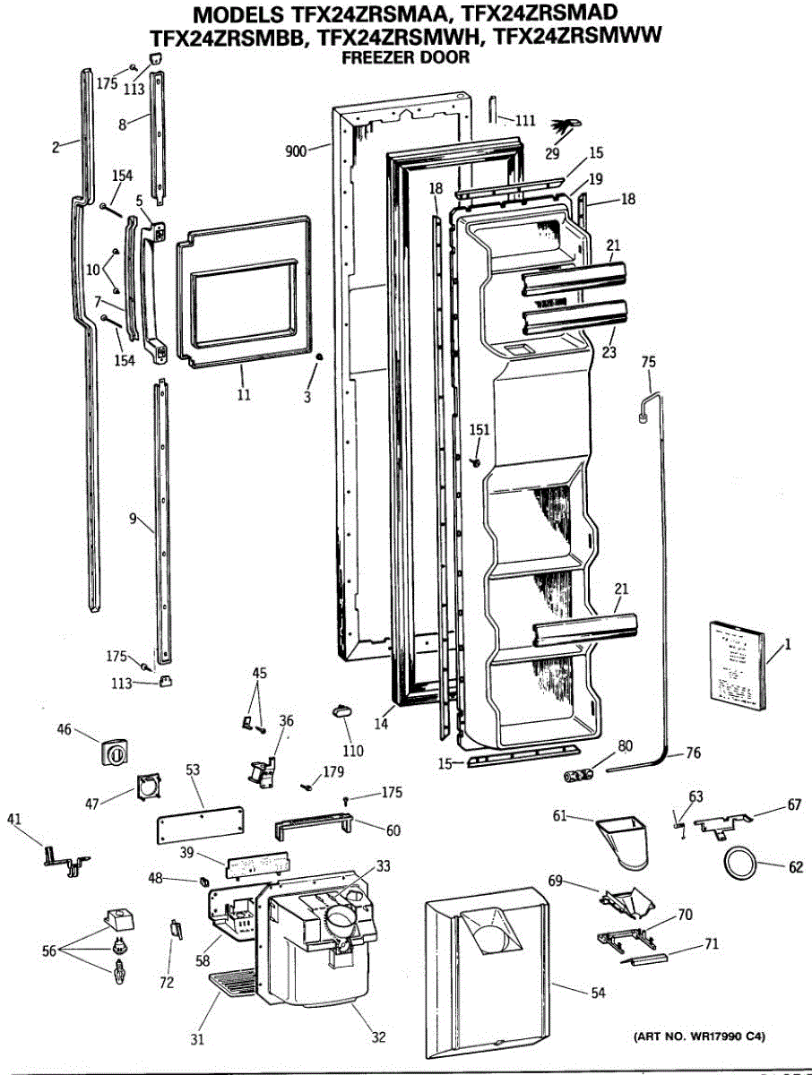 Parts for Ge TFX24ZRSMAD: 01 - Freezer Door Parts