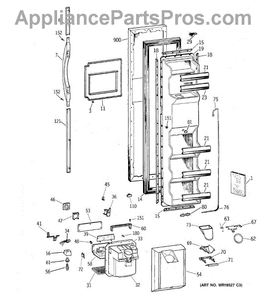 The Door Handle is an OEM part for GE refrigerators. This part provides a secure and comfortable grip for opening and closing the refrigerator door.