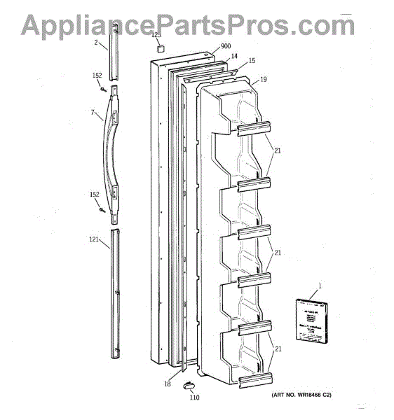 The Door Handle is an OEM part for GE refrigerators. This part provides a secure and comfortable grip for opening and closing the refrigerator door.