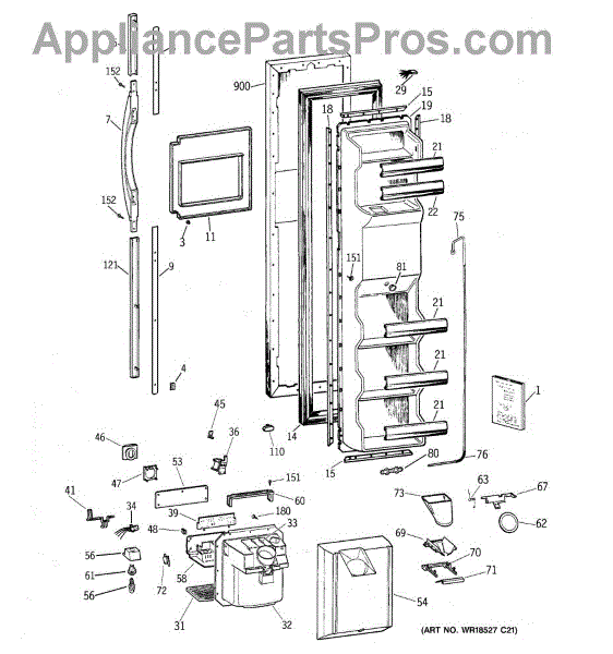 Ice dispenser door assembly seals the ice chute opening on your refrigerator. Replace if cracked, warped, or the rubber gasket is damaged and leaking air.