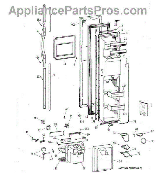 Parts for Ge TFX27PPBBBB: 01 - Freezer Door Parts