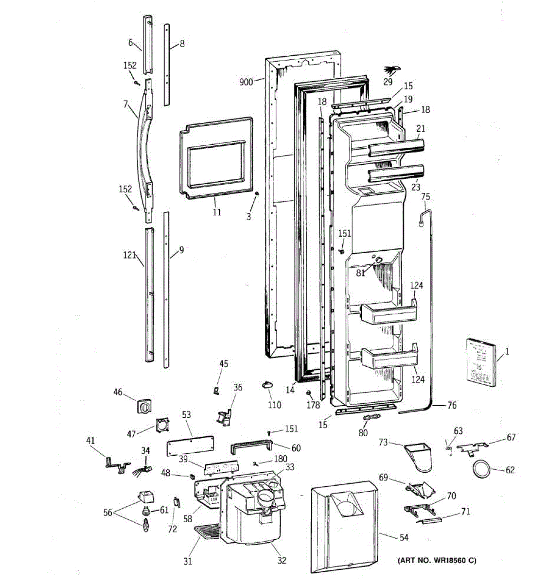 Ice dispenser door assembly seals the ice chute opening on your refrigerator. Replace if cracked, warped, or the rubber gasket is damaged and leaking air.
