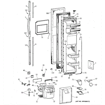 The Ice Door Assembly is an OEM part for GE refrigerators. It is integral to the ice dispenser system, controlling access to the ice chute. This component ensures the efficient delivery of ice cubes or crushed ice when activated and seals off the chute when not in use to maintain the freezer's temperature and prevent frost buildup.