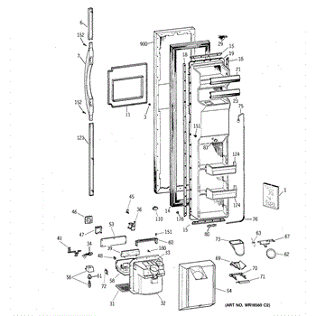 The Door Handle is an OEM part for GE refrigerators. This part provides a secure and comfortable grip for opening and closing the refrigerator door.