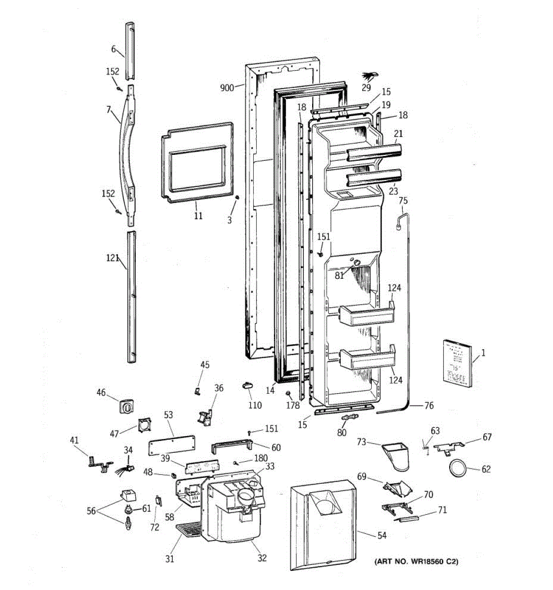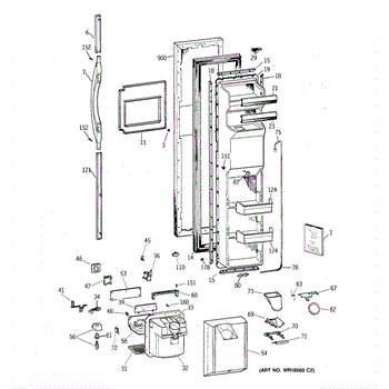 The Door Handle is an OEM part for GE refrigerators. This part provides a secure and comfortable grip for opening and closing the refrigerator door.