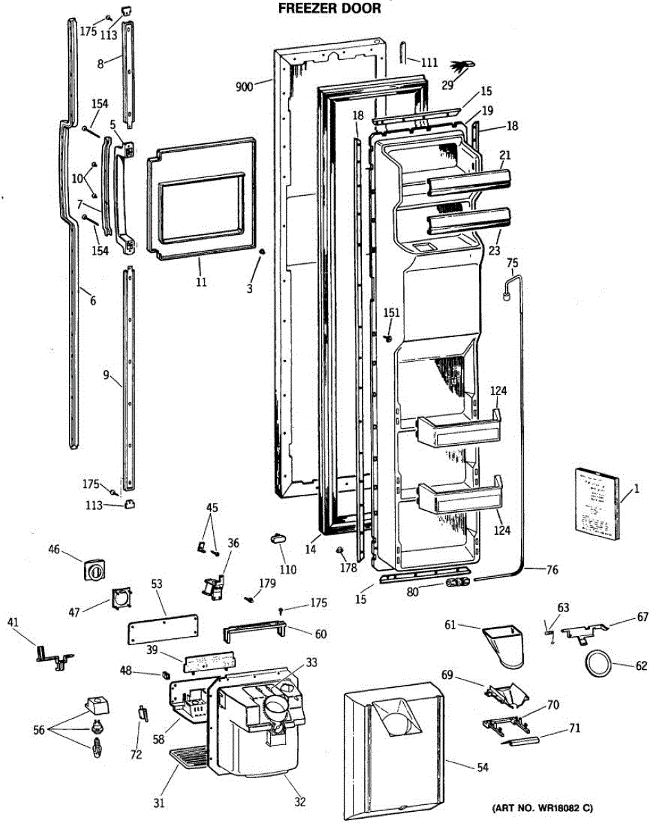The Ice Door Assembly is an OEM part for GE refrigerators. It is integral to the ice dispenser system, controlling access to the ice chute. This component ensures the efficient delivery of ice cubes or crushed ice when activated and seals off the chute when not in use to maintain the freezer's temperature and prevent frost buildup.