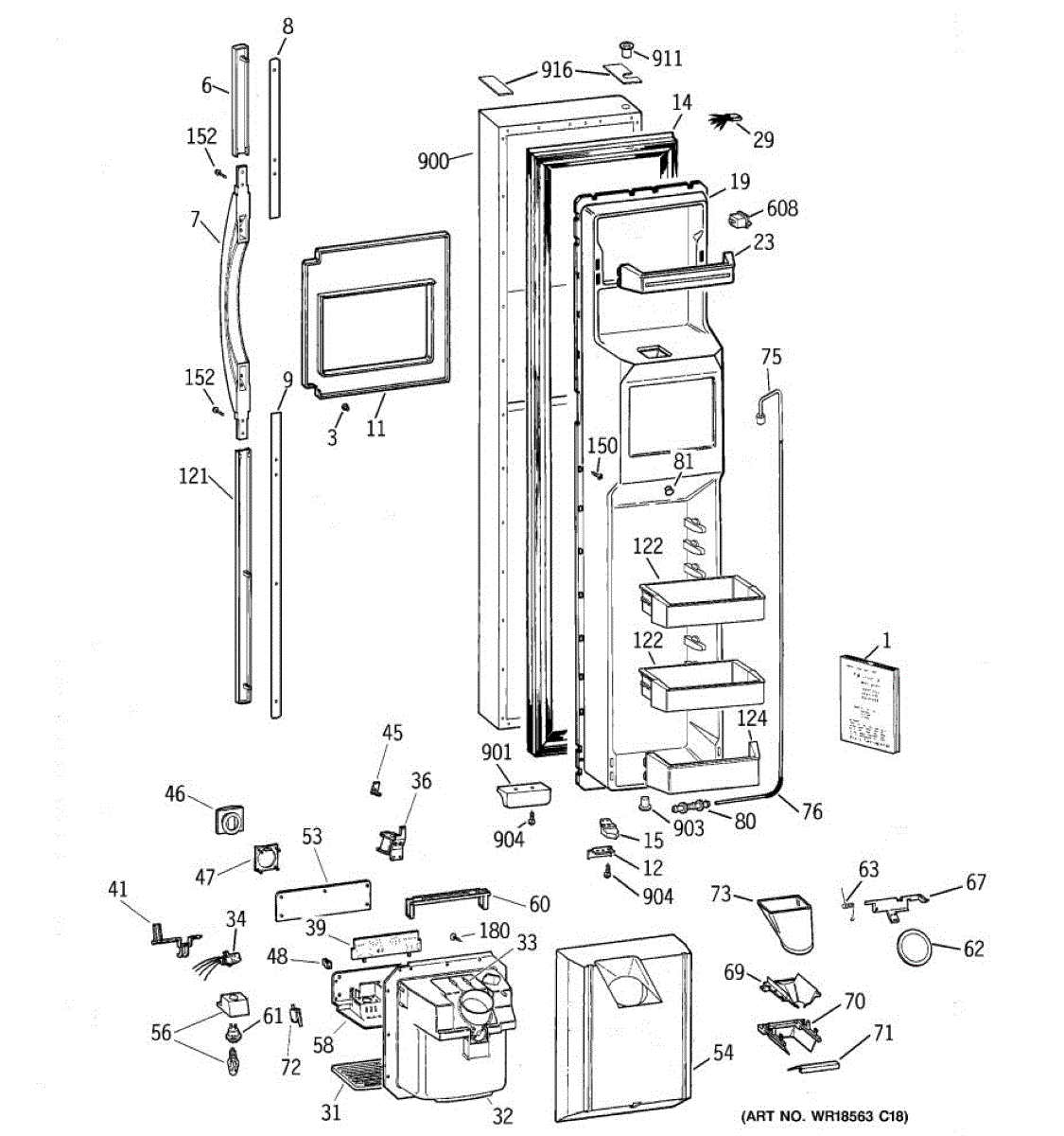 Ice dispenser door assembly seals the ice chute opening on your refrigerator. Replace if cracked, warped, or the rubber gasket is damaged and leaking air.