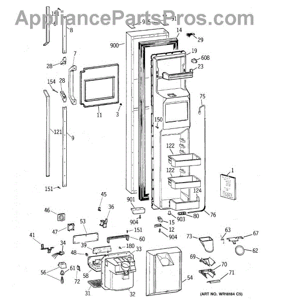 The Ice Door Assembly is an OEM part for GE refrigerators. It is integral to the ice dispenser system, controlling access to the ice chute. This component ensures the efficient delivery of ice cubes or crushed ice when activated and seals off the chute when not in use to maintain the freezer's temperature and prevent frost buildup.