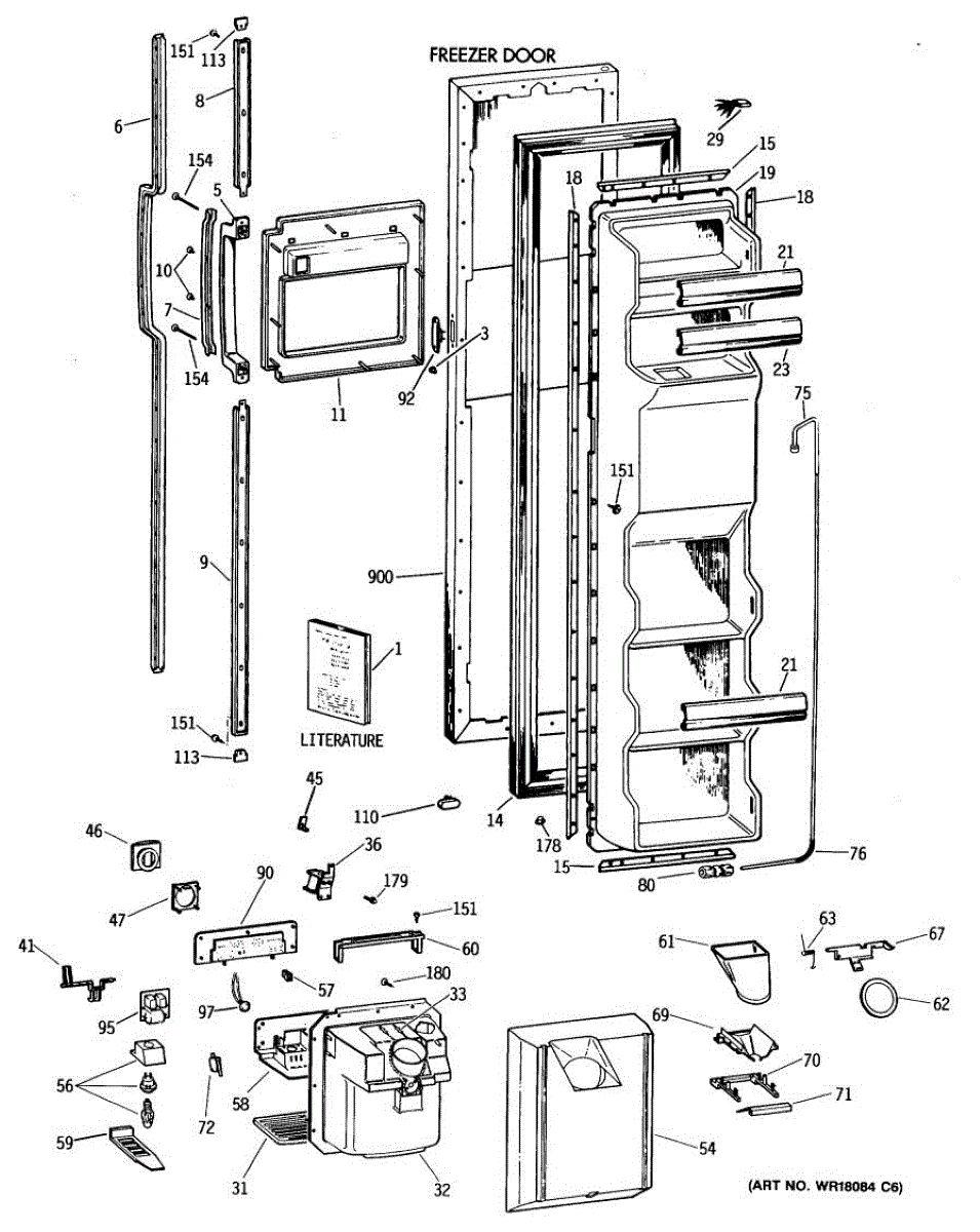 The Ice Door Assembly is an OEM part for GE refrigerators. It is integral to the ice dispenser system, controlling access to the ice chute. This component ensures the efficient delivery of ice cubes or crushed ice when activated and seals off the chute when not in use to maintain the freezer's temperature and prevent frost buildup.