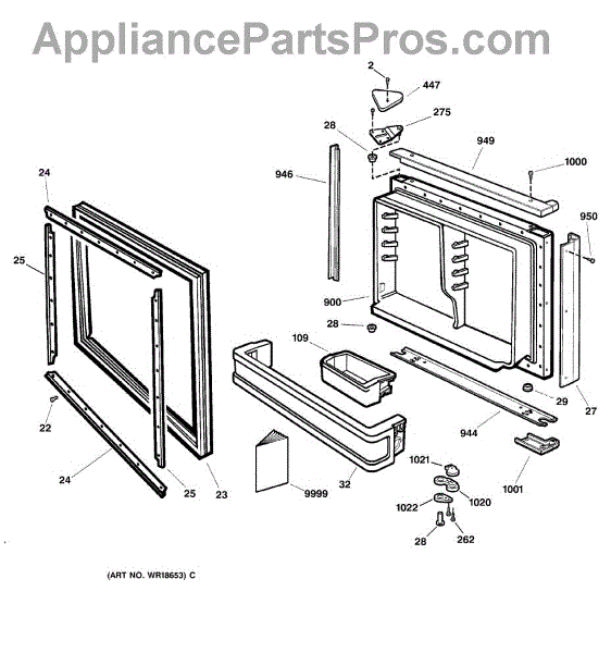 Parts for Ge TNX22BACARWW: 01 - Freezer Door Parts