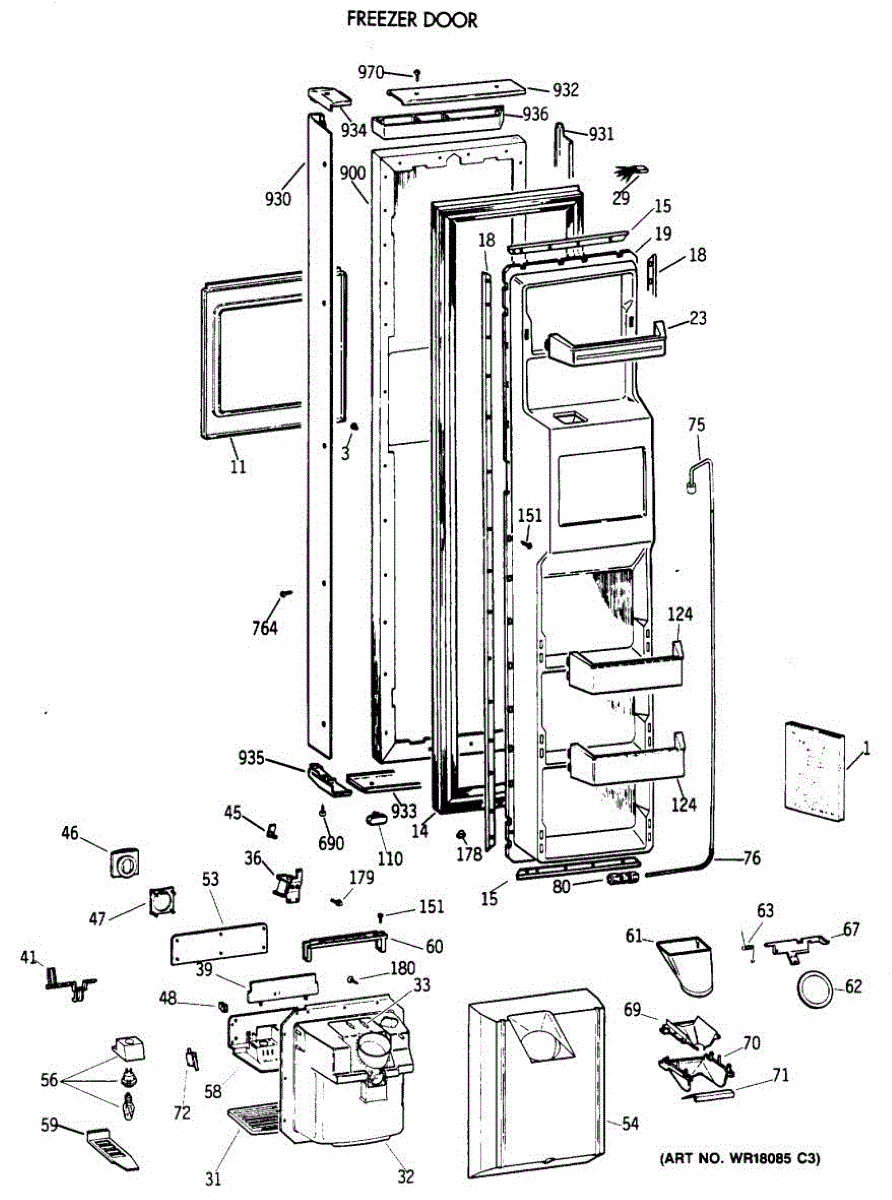 The Ice Door Assembly is an OEM part for GE refrigerators. It is integral to the ice dispenser system, controlling access to the ice chute. This component ensures the efficient delivery of ice cubes or crushed ice when activated and seals off the chute when not in use to maintain the freezer's temperature and prevent frost buildup.