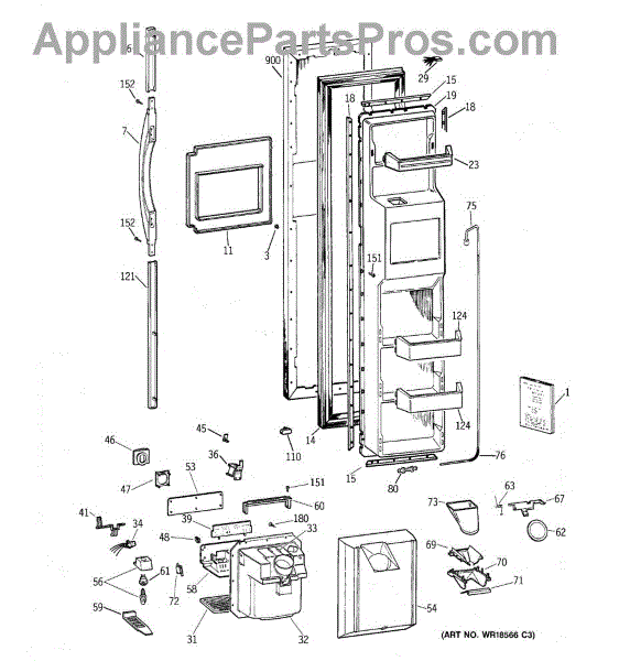 The Door Handle is an OEM part for GE refrigerators. This part provides a secure and comfortable grip for opening and closing the refrigerator door.
