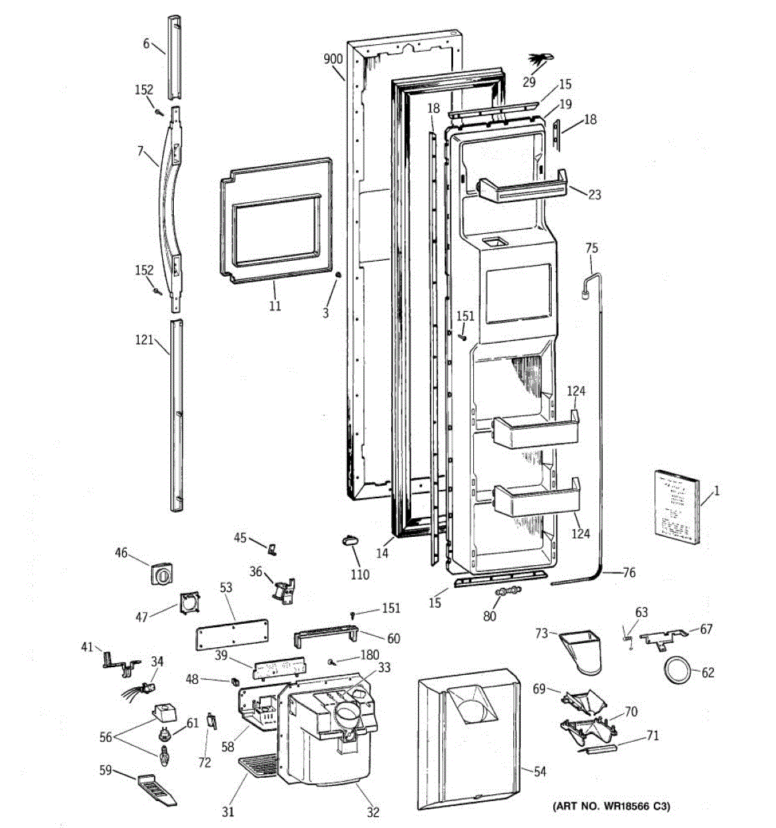 The Door Handle is an OEM part for GE refrigerators. This part provides a secure and comfortable grip for opening and closing the refrigerator door.