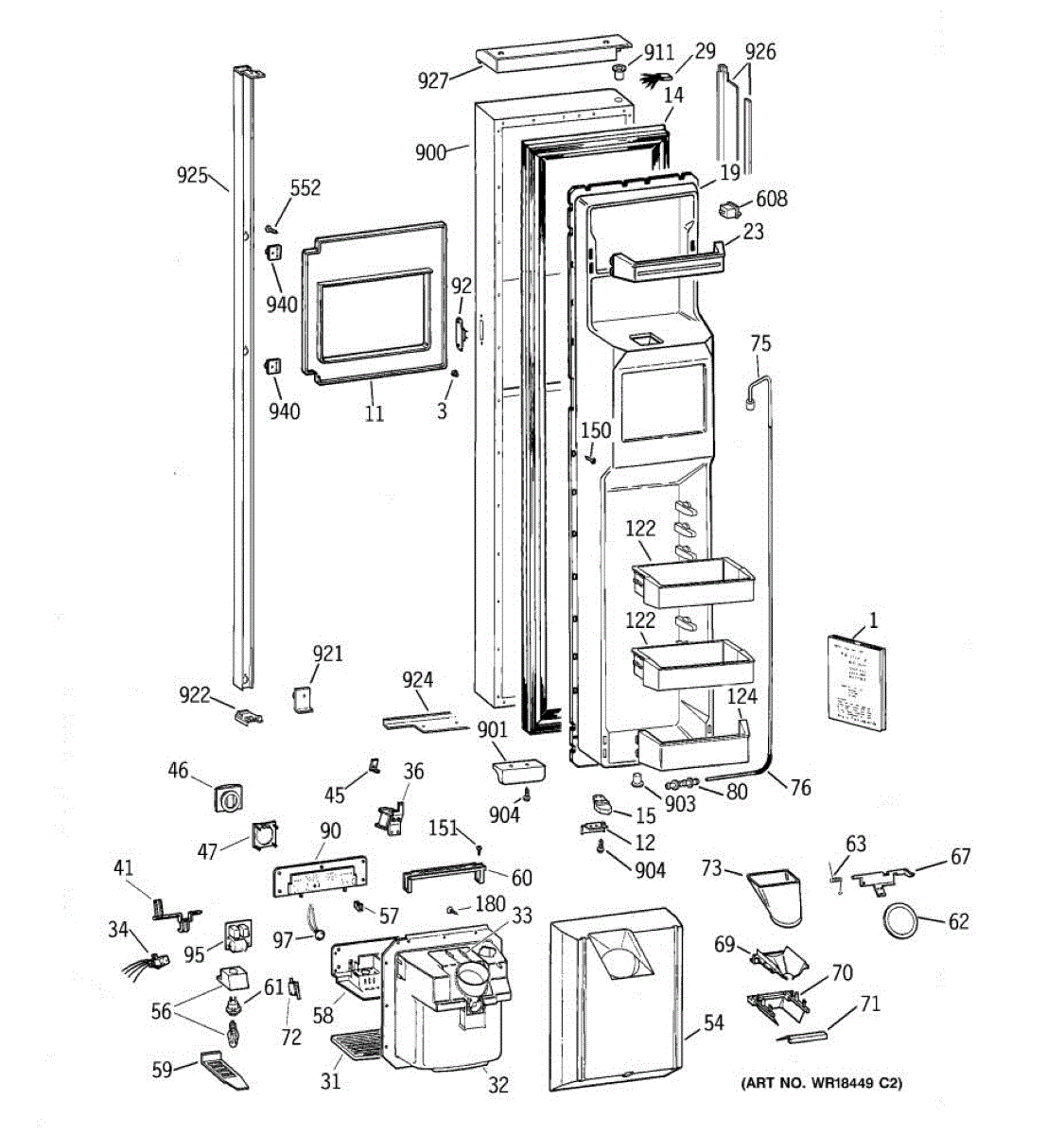 Ice dispenser door assembly seals the ice chute opening on your refrigerator. Replace if cracked, warped, or the rubber gasket is damaged and leaking air.