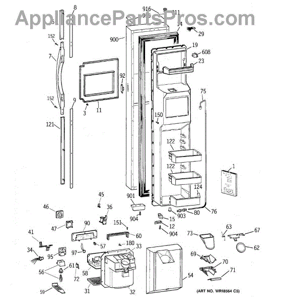 Ice dispenser door assembly seals the ice chute opening on your refrigerator. Replace if cracked, warped, or the rubber gasket is damaged and leaking air.