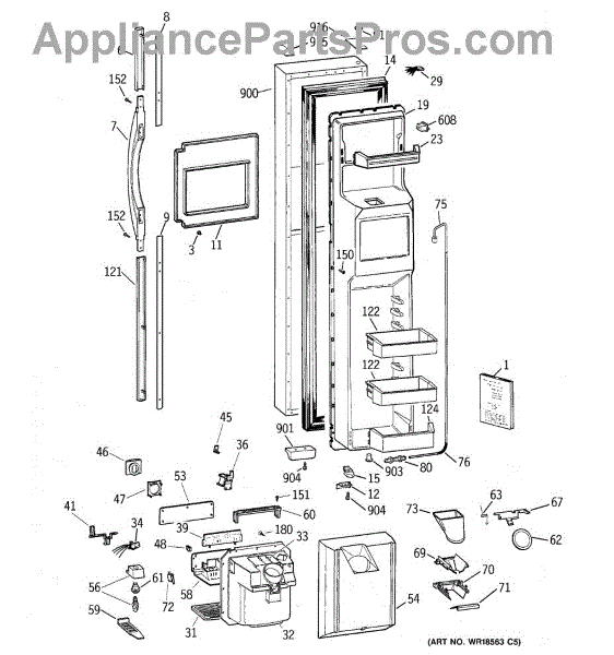 Ice dispenser door assembly seals the ice chute opening on your refrigerator. Replace if cracked, warped, or the rubber gasket is damaged and leaking air.