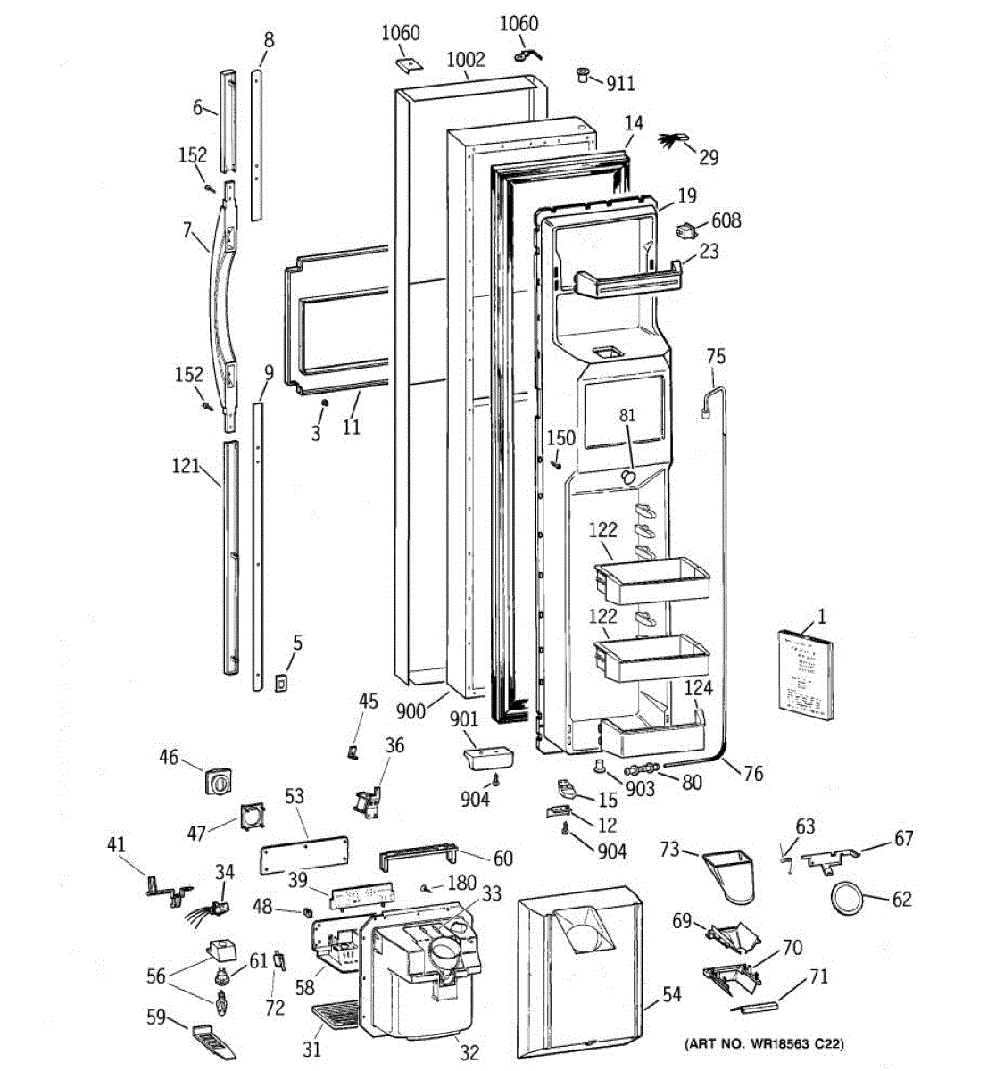 Ice dispenser door assembly seals the ice chute opening on your refrigerator. Replace if cracked, warped, or the rubber gasket is damaged and leaking air.