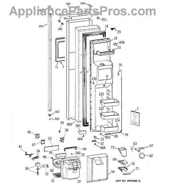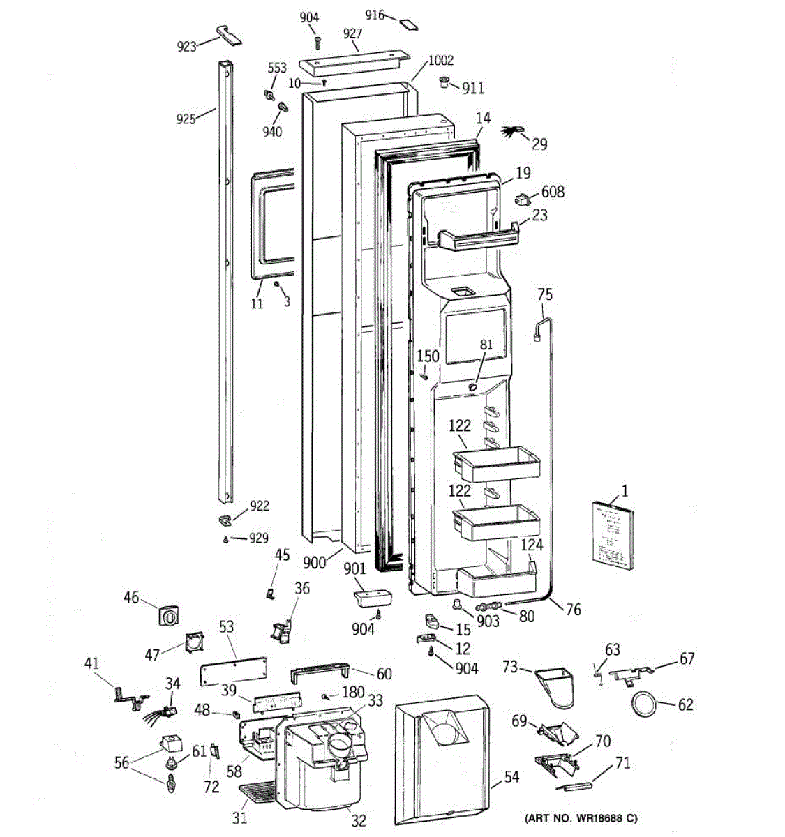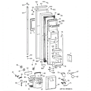 The Ice Door Assembly is an OEM part for GE refrigerators. It is integral to the ice dispenser system, controlling access to the ice chute. This component ensures the efficient delivery of ice cubes or crushed ice when activated and seals off the chute when not in use to maintain the freezer's temperature and prevent frost buildup.
