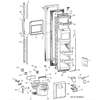The Ice Door Assembly is an OEM part for GE refrigerators. It is integral to the ice dispenser system, controlling access to the ice chute. This component ensures the efficient delivery of ice cubes or crushed ice when activated and seals off the chute when not in use to maintain the freezer's temperature and prevent frost buildup.