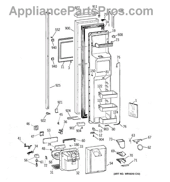 The Ice Door Assembly is an OEM part for GE refrigerators. It is integral to the ice dispenser system, controlling access to the ice chute. This component ensures the efficient delivery of ice cubes or crushed ice when activated and seals off the chute when not in use to maintain the freezer's temperature and prevent frost buildup.