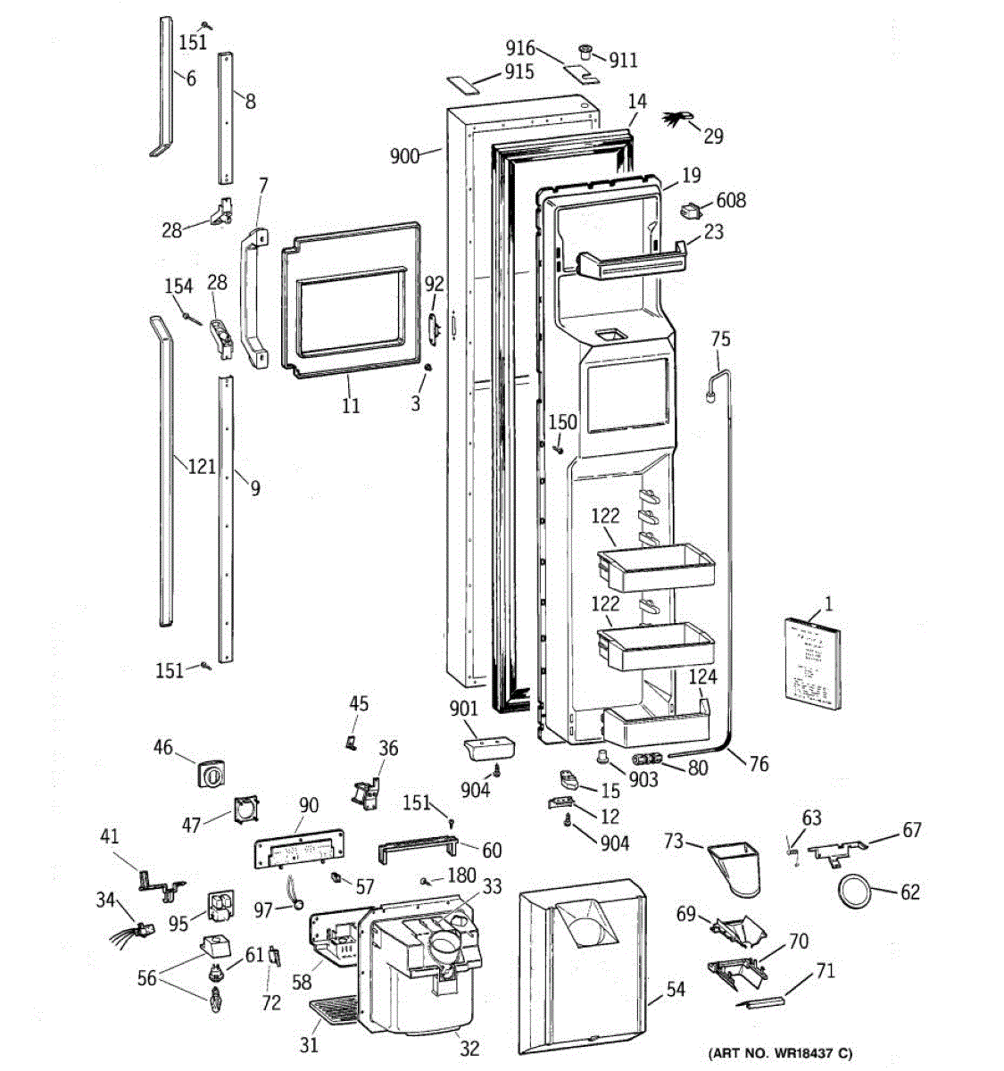 The Ice Door Assembly is an OEM part for GE refrigerators. It is integral to the ice dispenser system, controlling access to the ice chute. This component ensures the efficient delivery of ice cubes or crushed ice when activated and seals off the chute when not in use to maintain the freezer's temperature and prevent frost buildup.