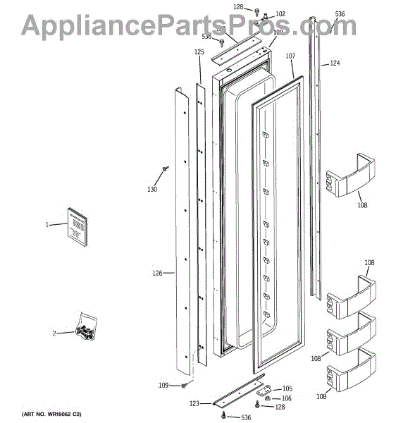 Parts for Ge ZIS360NMB: 01 - Freezer Door Parts