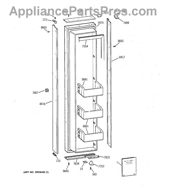 Freezer side bottom hinge shim. For top hinge shim use WR2X8592.