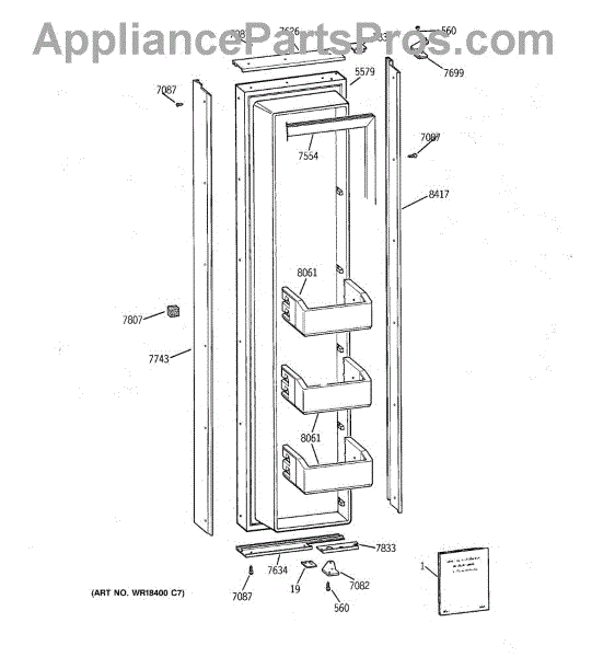 Freezer door side trim.