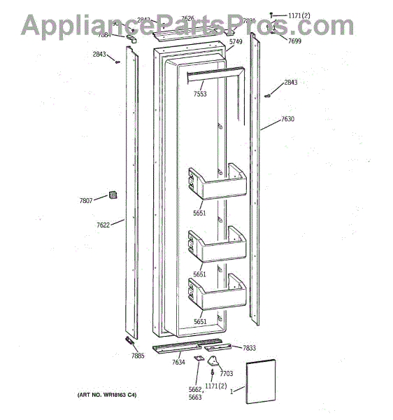 Freezer door side trim.