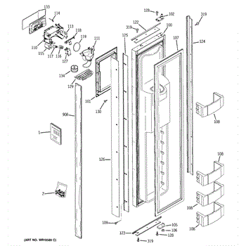 Parts for Ge ZISB360DRC: 01 - Freezer Door Parts