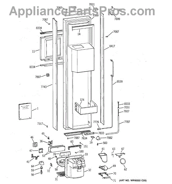 The Ice Door Assembly is an OEM part for GE refrigerators. It is integral to the ice dispenser system, controlling access to the ice chute. This component ensures the efficient delivery of ice cubes or crushed ice when activated and seals off the chute when not in use to maintain the freezer's temperature and prevent frost buildup.