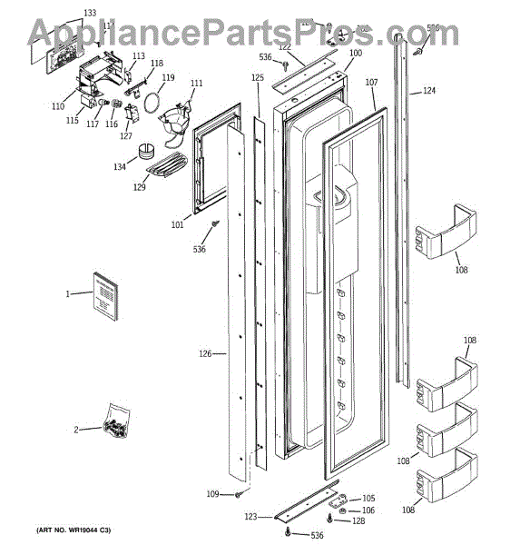 The Ice Door Assembly is an OEM part for GE refrigerators. It is integral to the ice dispenser system, controlling access to the ice chute. This component ensures the efficient delivery of ice cubes or crushed ice when activated and seals off the chute when not in use to maintain the freezer's temperature and prevent frost buildup.