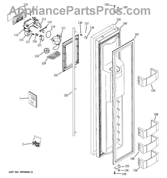 Ice dispenser door assembly seals the ice chute opening on your refrigerator. Replace if cracked, warped, or the rubber gasket is damaged and leaking air.