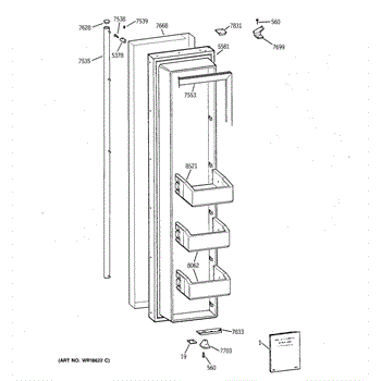 Freezer side bottom hinge shim. For top hinge shim use WR2X8592.
