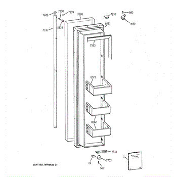 Freezer side bottom hinge shim. For top hinge shim use WR2X8592.
