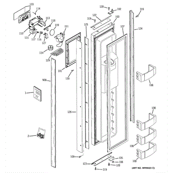 The Ice Door Assembly is an OEM part for GE refrigerators. It is integral to the ice dispenser system, controlling access to the ice chute. This component ensures the efficient delivery of ice cubes or crushed ice when activated and seals off the chute when not in use to maintain the freezer's temperature and prevent frost buildup.