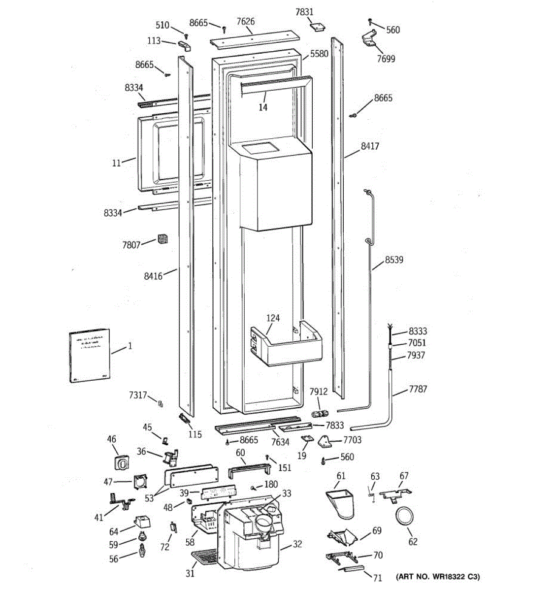 Ice dispenser door assembly seals the ice chute opening on your refrigerator. Replace if cracked, warped, or the rubber gasket is damaged and leaking air.