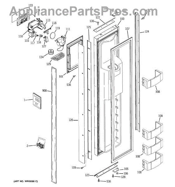 The Ice Door Assembly is an OEM part for GE refrigerators. It is integral to the ice dispenser system, controlling access to the ice chute. This component ensures the efficient delivery of ice cubes or crushed ice when activated and seals off the chute when not in use to maintain the freezer's temperature and prevent frost buildup.
