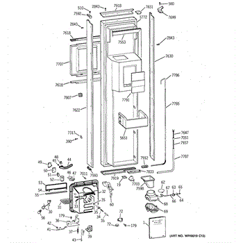 This dispenser cradle is the molded housing that supports and guides the refrigerator dispenser components, helping keep the dispenser chute and actuator aligned for smooth water or ice dispensing. Replacement restores proper fit and function. What it does: