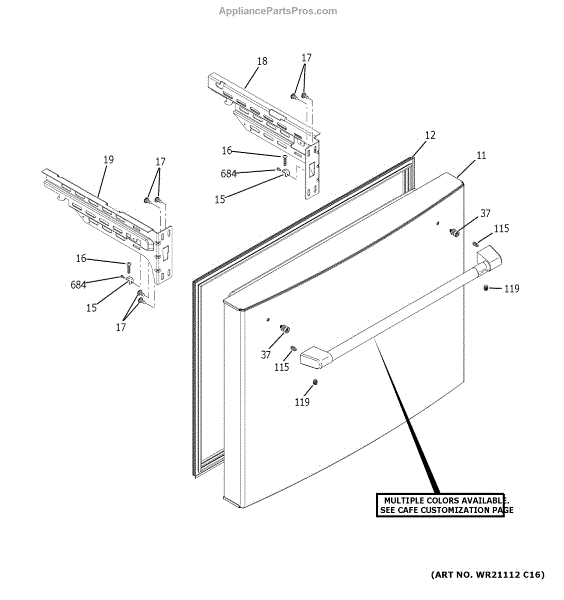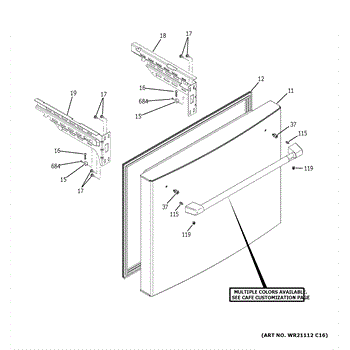 The Fastener Door Handle is an OEM component for GE refrigerators. This door handle provides a comfortable grip for accessing refrigerator shelves and bins. It attaches securely to the refrigerator door through durable metal fasteners.