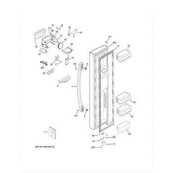 The Ice Dispenser Paddle Assembly is an OEM part for GE refrigerators. It is a component located inside the ice chute that guides ice cubes from the freezer bin out through the dispenser and into a glass below.