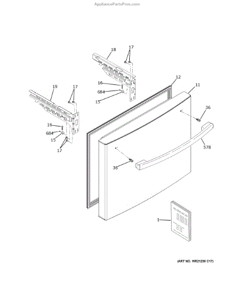 The Fastener Door Handle is an OEM component for GE refrigerators. This door handle provides a comfortable grip for accessing refrigerator shelves and bins. It attaches securely to the refrigerator door through durable metal fasteners.