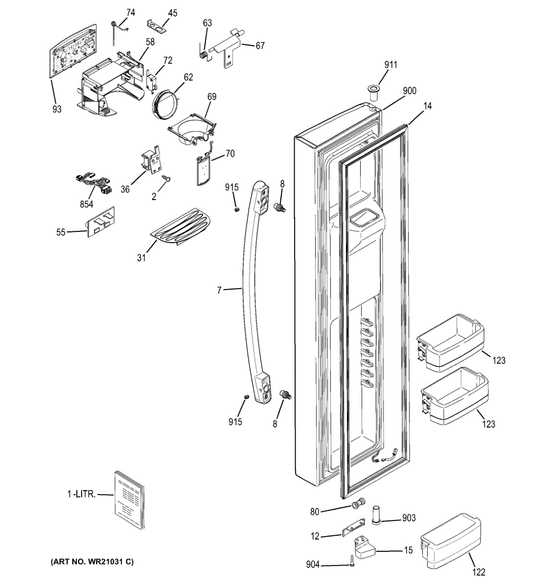 Ice dispenser door assembly seals the ice chute opening on your refrigerator. Replace if cracked, warped, or the rubber gasket is damaged and leaking air.